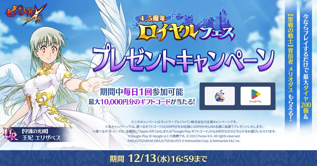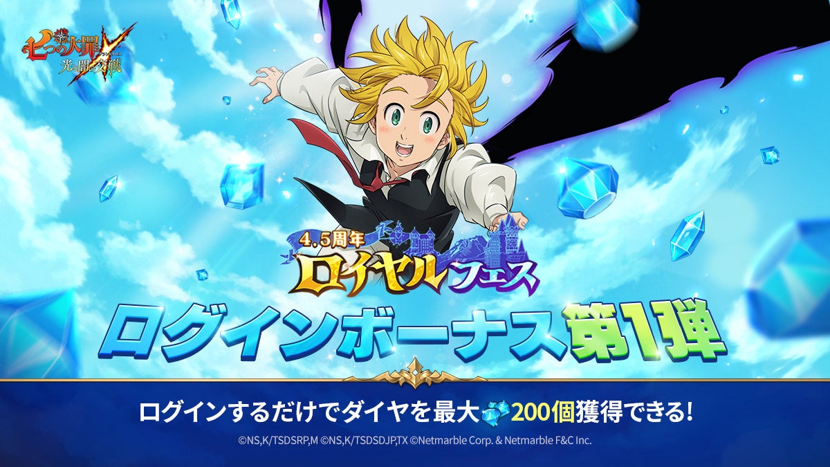 - ネットマーブルが『七つの大罪 ~光と闇の交戦~』の4.5周年ロイヤルフェスを開始