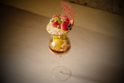 和牛や旬の海鮮を使った料理や特製パフェなど、全13品の特別コースです。
