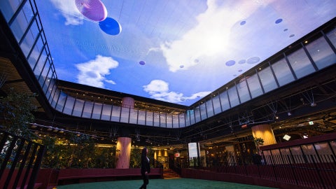 - LandSkipが天井LEDビジョンや円柱LEDビジョン、壁面LEDビジョンに空間演出コンテンツを制作