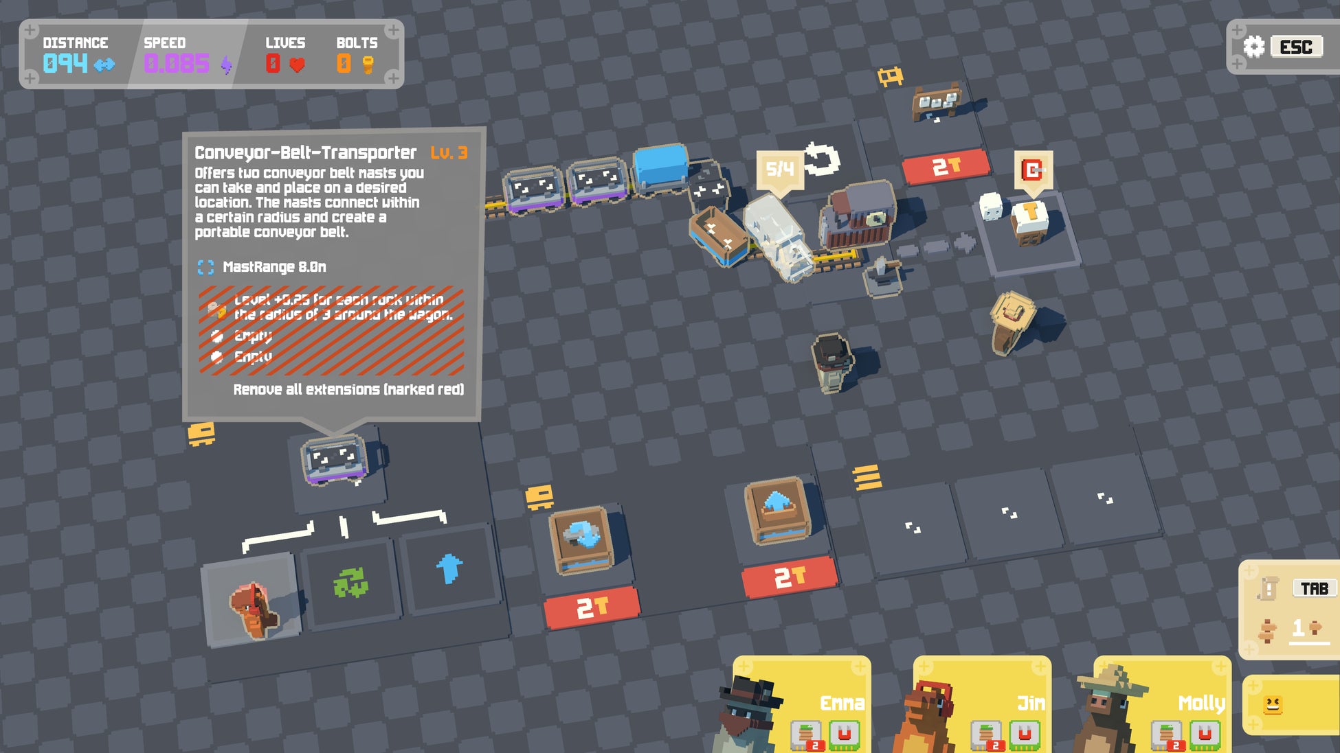 - 資源を集めて線路を作り、列車をアップグレードしながらプレイ