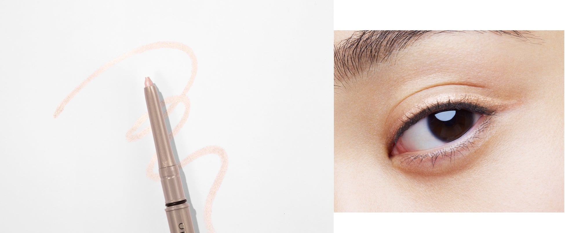 また、アイカラーペンシルは、微細パールを敷き詰めることで透明感のある輝きを生み出し、肌に溶け込むようなツヤ感ラインを叶えます。