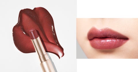 リップティントは、みずみずしく透けるカラーにきらめくグリッターを組み合わせた透けるラメ色ティントで、冬の寒色のラメとパールが唇の温度感とクールな輝きを引き立てます。