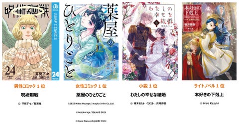 男性コミックでは『呪術廻戦』が1位に輝き、女性コミックでは『薬屋のひとりごと』が1位となりました。