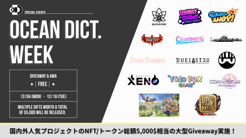 - 「ocean dict. Giveaway Week」は、ブロックチェーンゲーム市場の活性化を目指して開催されるイベント
