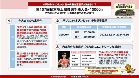 - 2023年12月10日に国立競技場で開催される第107回日本陸上競技選手権大会10000m