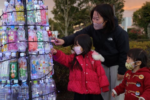 子供たちが作ったペットボトルアートツリーの点灯式も行われ、点灯後は2024年1月31日まで日没から21時まで点灯し続けます。