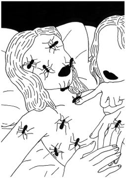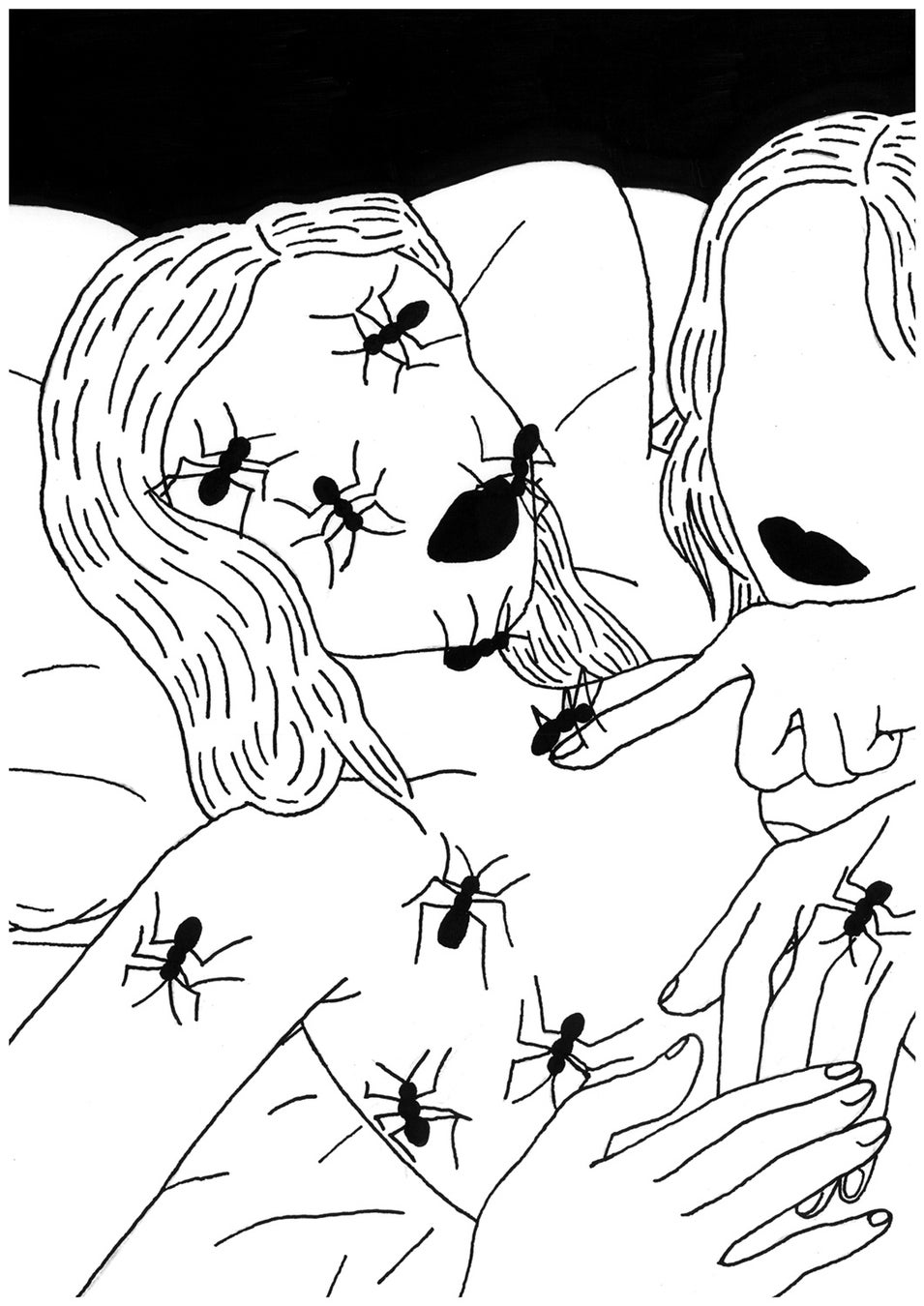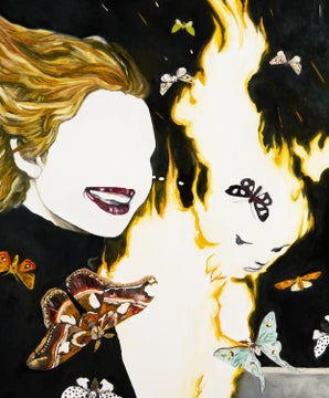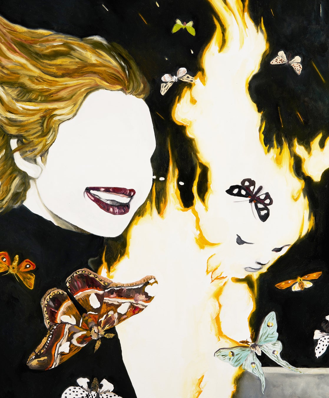 オートモアイは絵画を通じて、夢と現実の曖昧な感覚を表現しています。