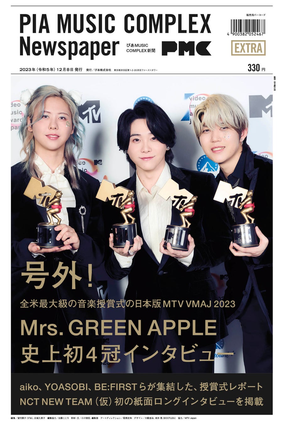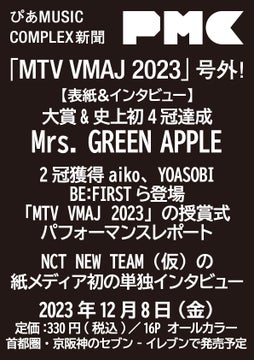 史上初の4冠を達成したMrs. GREEN APPLEが表紙を飾り、インタビューでは受賞についてや結成10周年、5thフルアルバムのリリース、成功したアリーナツアーなどについて語っています。
