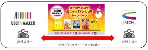 「BOOK☆WALKER 読み放題MAXコース」と「iAEON」の会員向けに、本コラボレーションキャンペーンが開催されます。