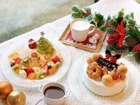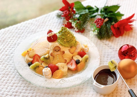 - クリスマスデコレーションぱんケーキ、とろ〜りあったかチーズフォンデュ、ホッとマシュマロミルクティー、クリスマスケーキ