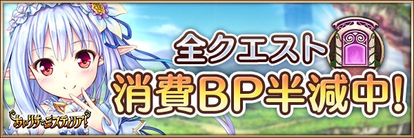 期間中、対象クエストの消費BPが半分になり、イベントポイントが2倍になります!