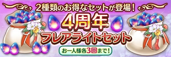 フレアライトとBP回復薬がセットになった、2種類の『特・アプリ4周年冒険セット』と