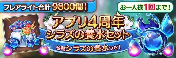 無償フレアライト4900個、各種シラズの養水がおまけでついてくる、お得なセットが登場しました!
