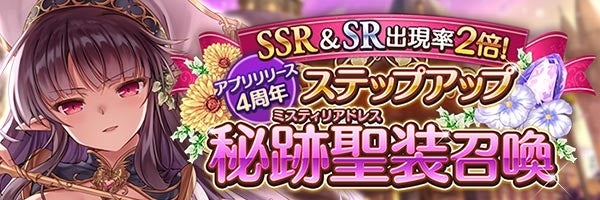 今までに登場した秘跡聖装が全て出現する、アプリリリース4周年ステップアップ秘跡聖装召喚が開催!