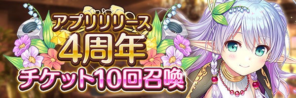 毎日1枚ずつ、合計15枚まで『アプリリリース4周年10回召喚チケット』をプレゼント!