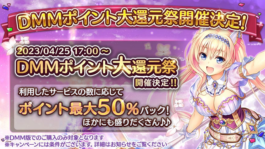 ※『DMMポイント大還元祭』の詳細につきましては後日、DMM.comおよびDMM GAMESプラットフォームにてお知らせいたします