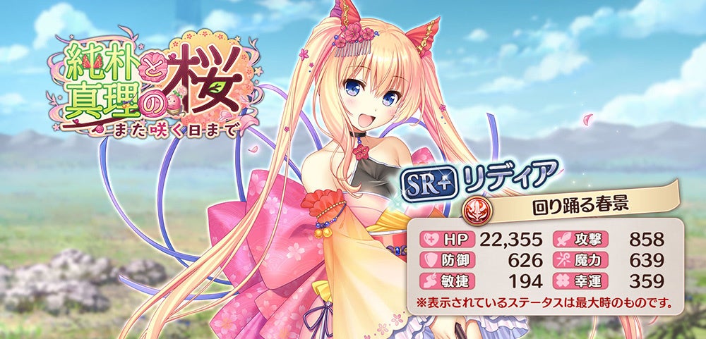 イベントクエストで入手できる『一本桜の花びら』を集め、SR+リディア【回り踊る春景】を手に入れましょう!