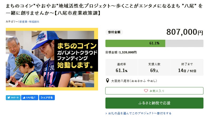 八尾市は、大阪芸術大学とのコラボレーションで、クラウドファンディング「まちのコイン”やおおや”地域活性化プロジェクト~歩くことがエンタメになるまち ”八尾” を一緒に創りませんか~」のPR動画を制作しました。