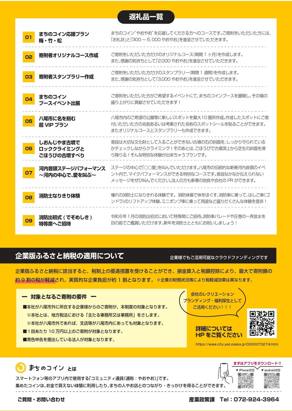 また、河内音頭祭りや消防士なりきり体験など、関係各社の協力を得て、クラウドファンディング限定の特別な返礼品も用意されています。