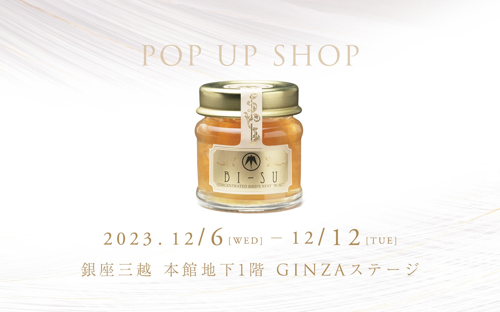 - BISU銀座三越ポップアップストアでは、2023年12月6日(水)から12月12日(火)までの期間、10:00〜20:00まで営業しております。
