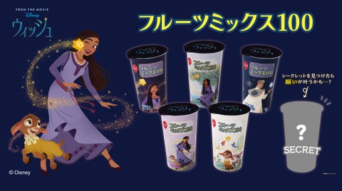 ディズニー100周年記念作品『ウィッシュ』のキャラクターがカップデザインに使用されており、テーマである「願い」を象徴する苺も含まれています。