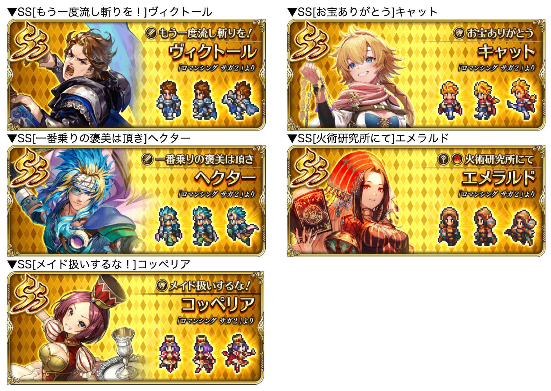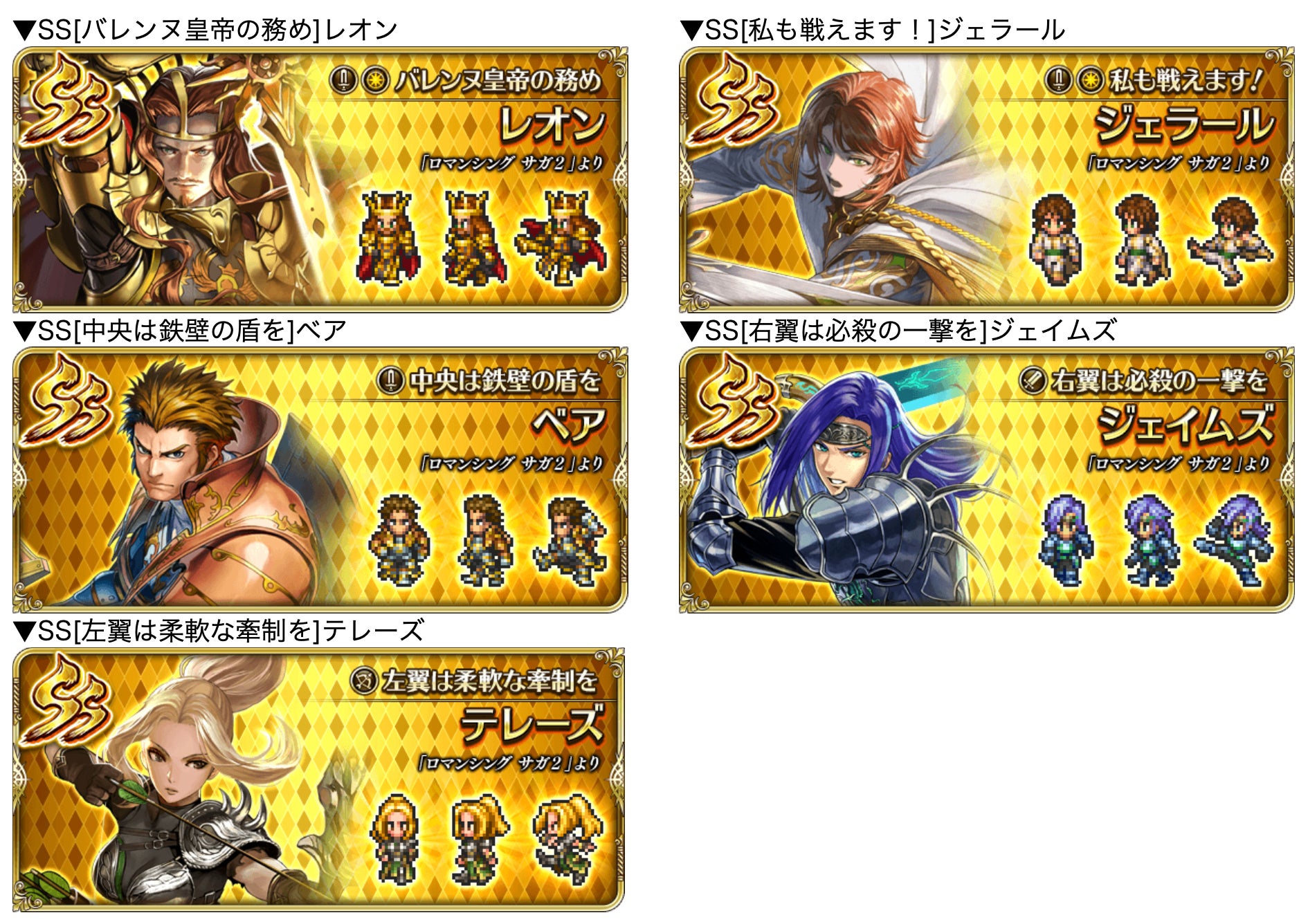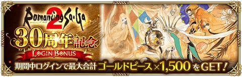• ロマンシングサガ2の30周年記念ログインボーナスや舞台「SaGa THE STAGE~再生の絆~」チケット一般発売開始記念ログインボーナスもあり