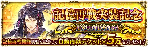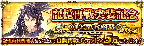 • 最大30日間ログインで45,000ジュエルと自動再戦チケット15,000枚プレゼント