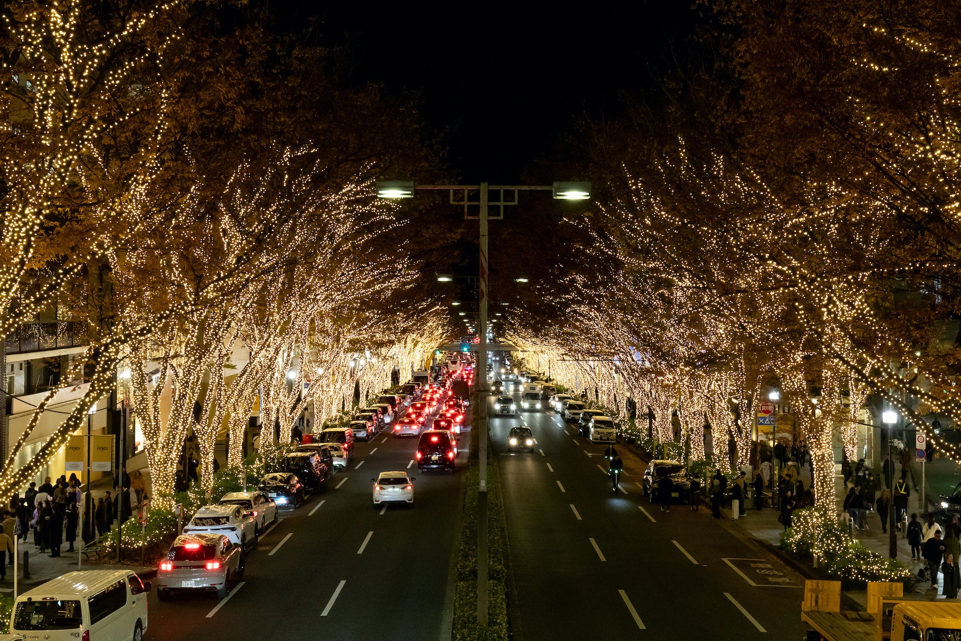 - 表参道の欅の木154本がシャンパンゴールドの光で彩られる