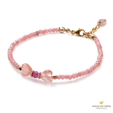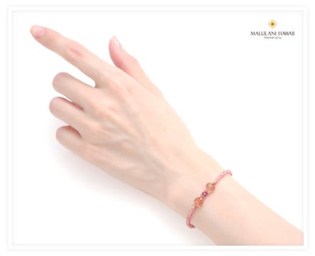 - 限定ブレスレット「Strawberry Ribbon」は、ストロベリークオーツと薔薇色のインカローズを使用