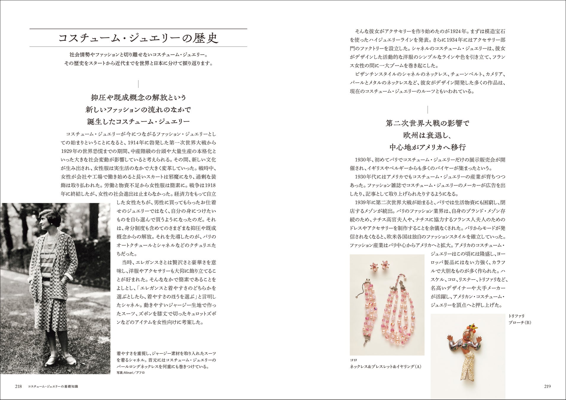 また、コスチューム・ジュエリーの歴史やエピソード、基礎知識、ハンドメイドのテクニックも紹介されています。