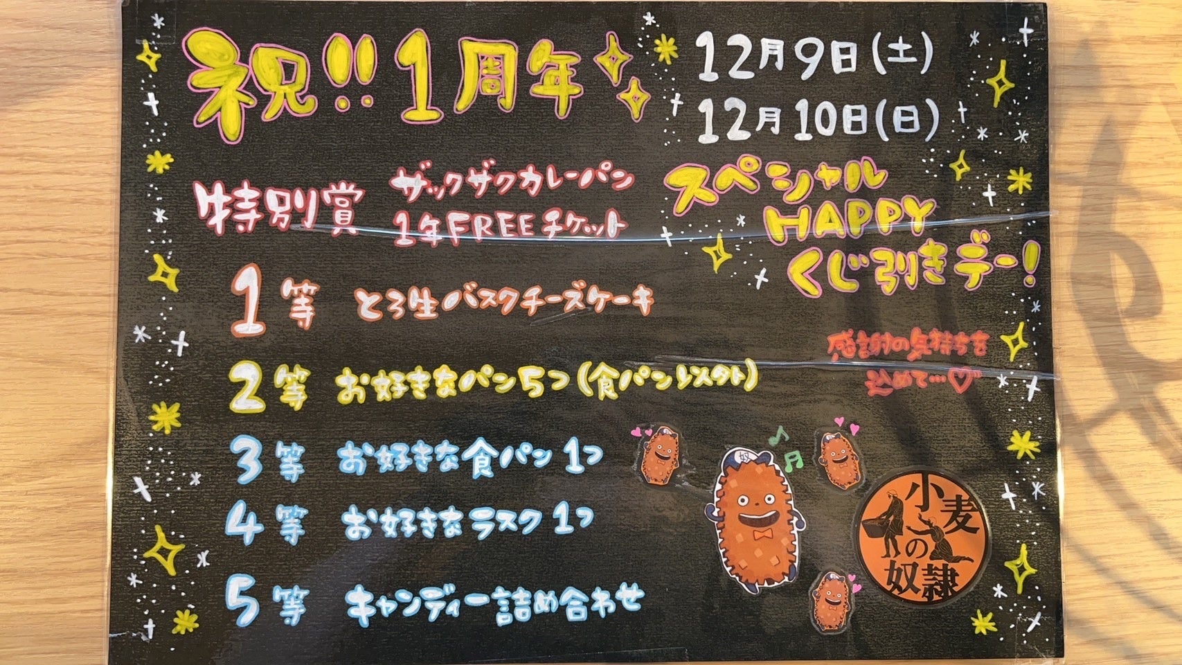 小麦の奴隷 砺波店1周年記念キャンペーン!特別賞はザックザクカレーパン1年フリーチケット!