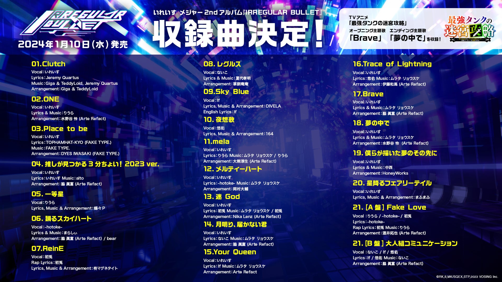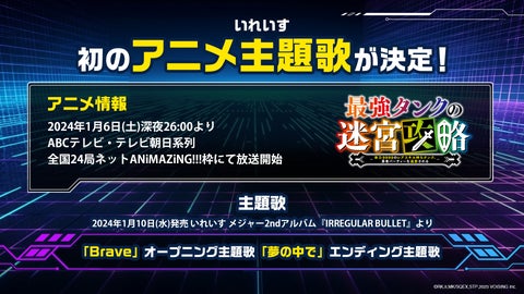 さらに、いれいすのメジャー2ndアルバム『IRREGULAR BULLET』からの収録曲2曲がTVアニメ『最強タンクの迷宮攻略』の主題歌に決定しました。