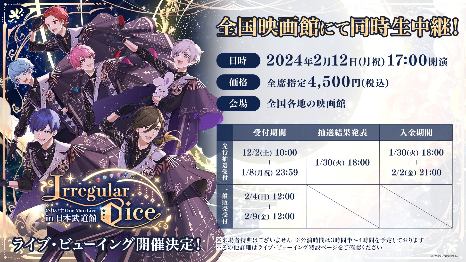 - いれいす初の日本武道館ワンマンライブ『いれいす One Man Live in 日本武道館「Irregular Dice」』のチケット先行抽選受付が開始