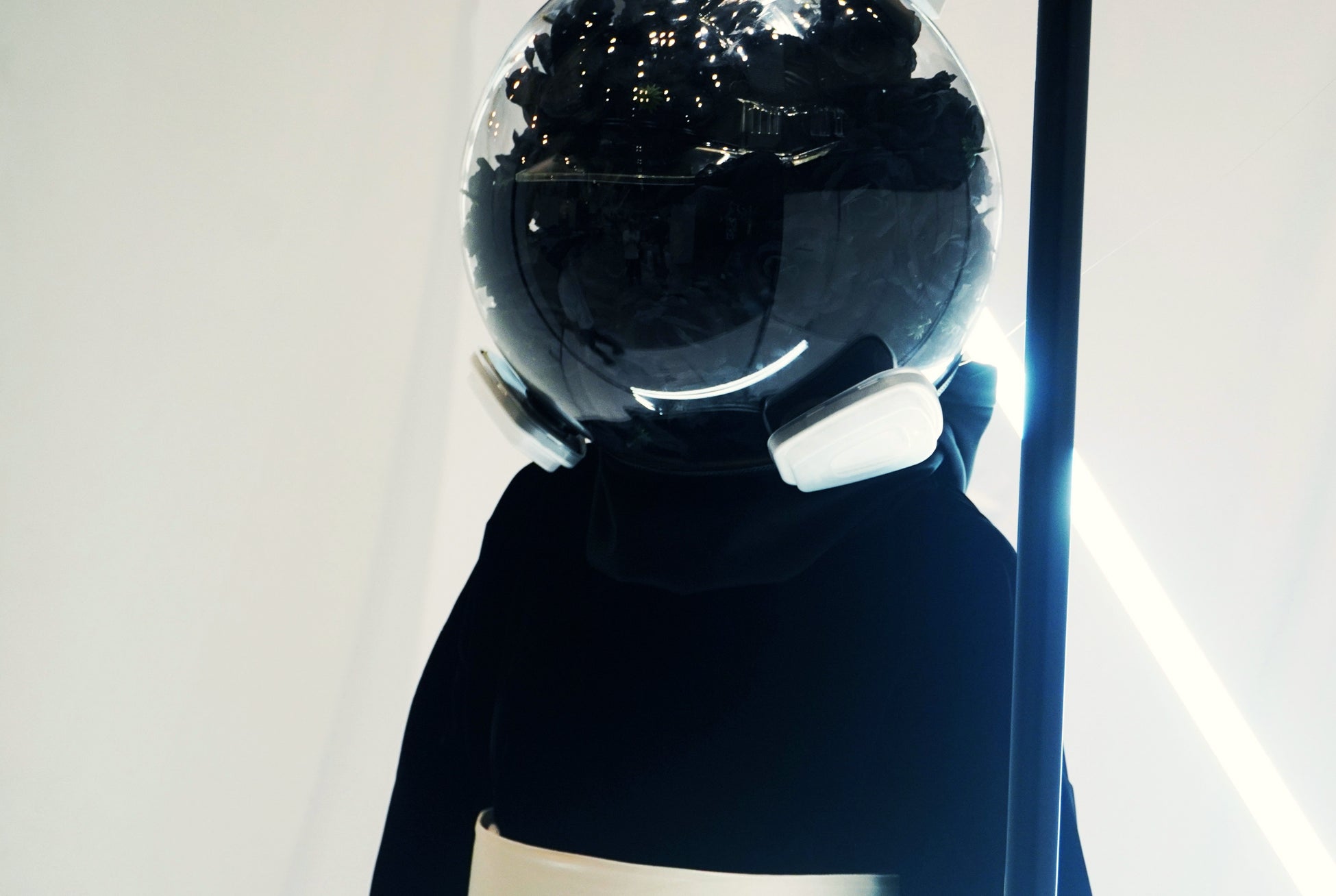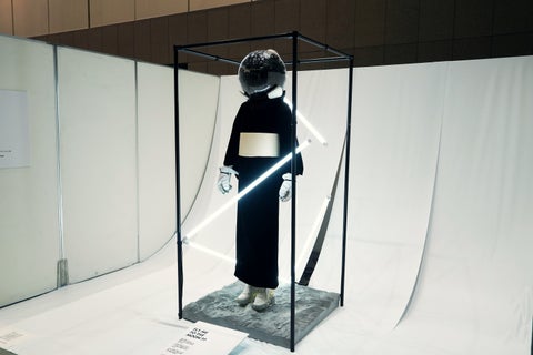 - 着物を纏った女性は宇宙服を彷彿とさせるヘルメットを被り、異質なアート作品として注目を集めた