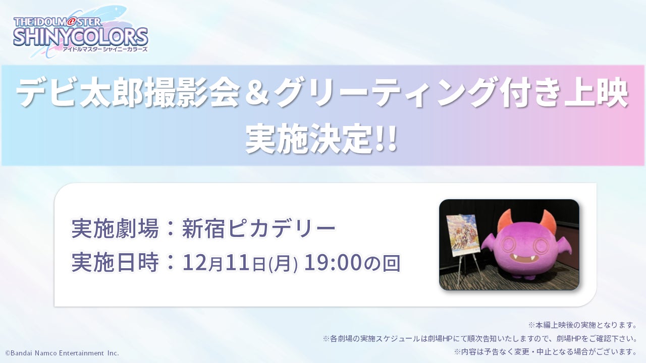 - 12月11日に新宿ピカデリーで「デビ太郎撮影会&お見送りグリーティング」付き上映が行われる