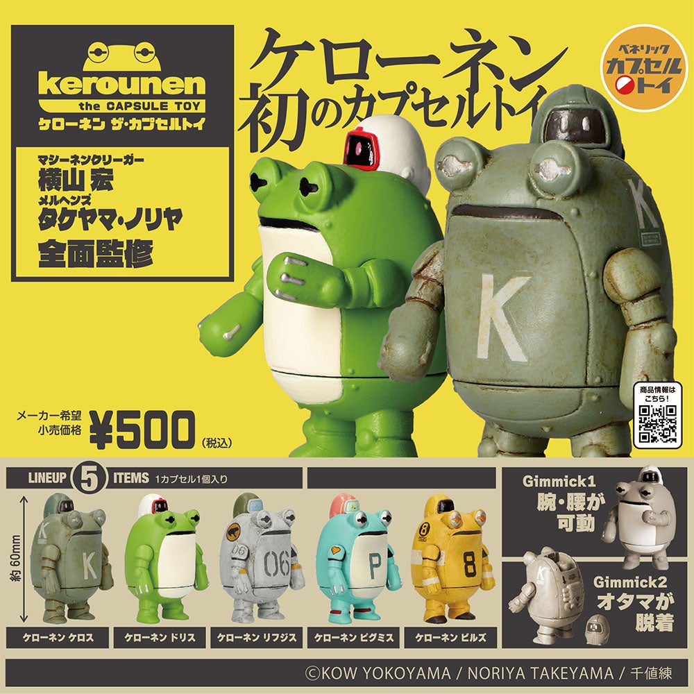 イラストレーターの横山宏氏とクリエイターのタケヤマ・ノリヤ氏によるコラボ作品「ケローネン」がカプセルトイとして登場します。