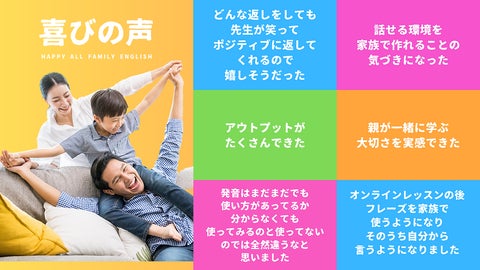 - ALL FAMILY ENGLISHは親子向けのオンライン英会話スクールであり、家庭内での英会話習慣を育むことができる