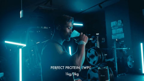 第二弾プロモーションビデオでは、低カロリーのホエイプロテインアイソレート(WPI)を使用した”PERFECT PROTEIN 1kg/3kg”と、トレーニングに適した”PERFECT EAA 675g”が紹介されました。