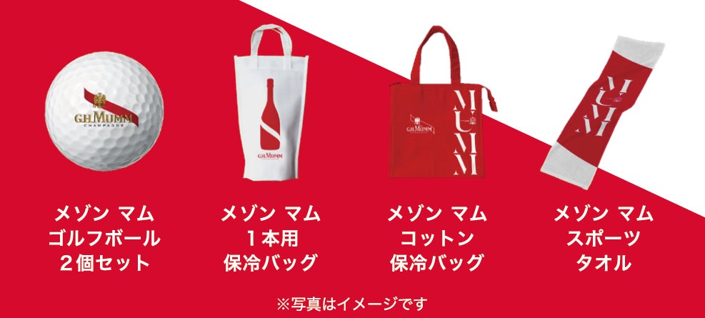 キャンペーンでは、ゴルフと一緒に楽しむイメージのオリジナルグッズが当たります。