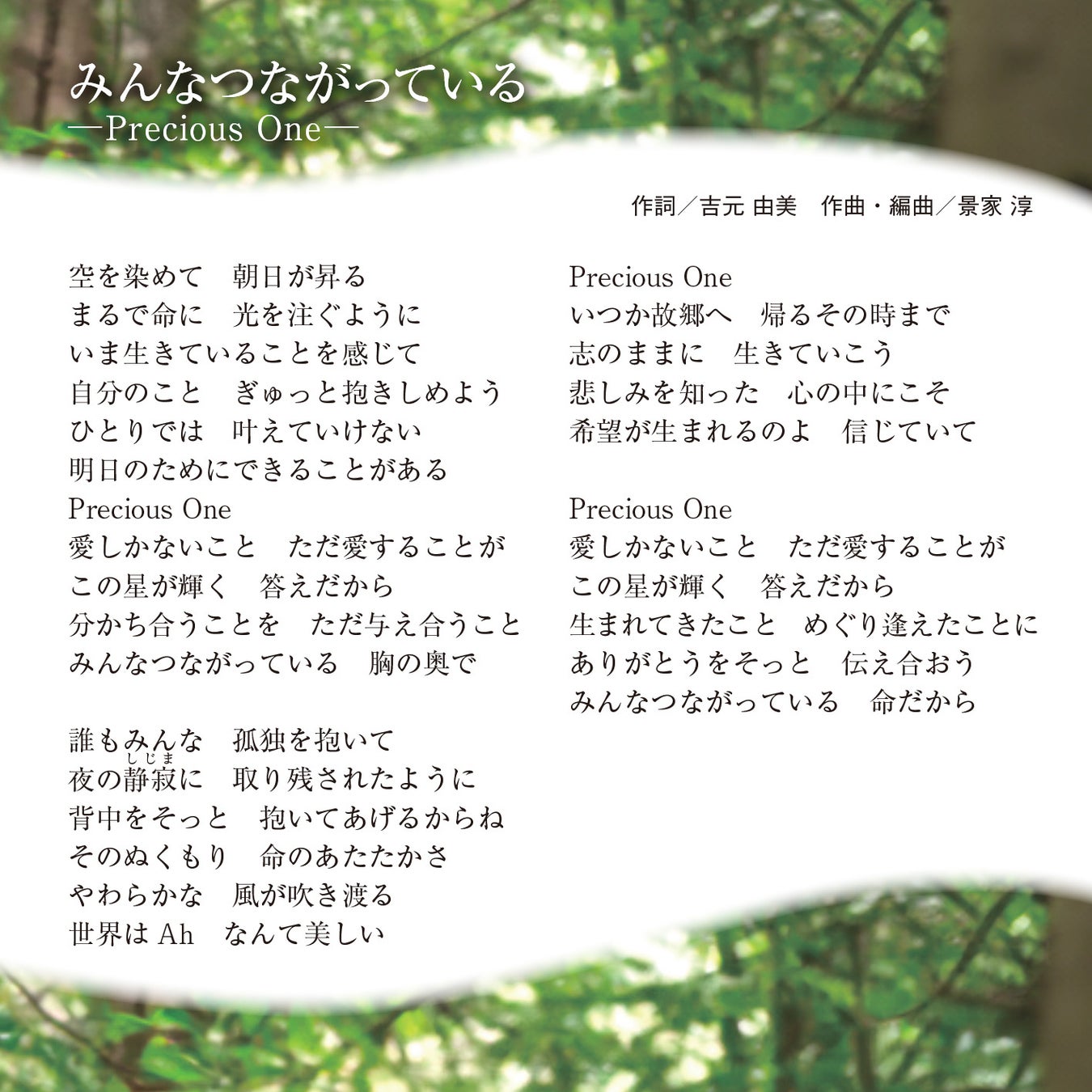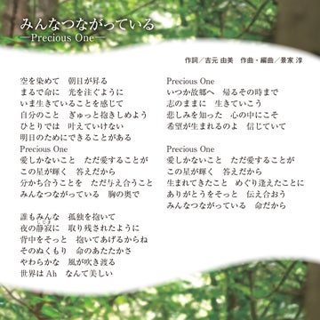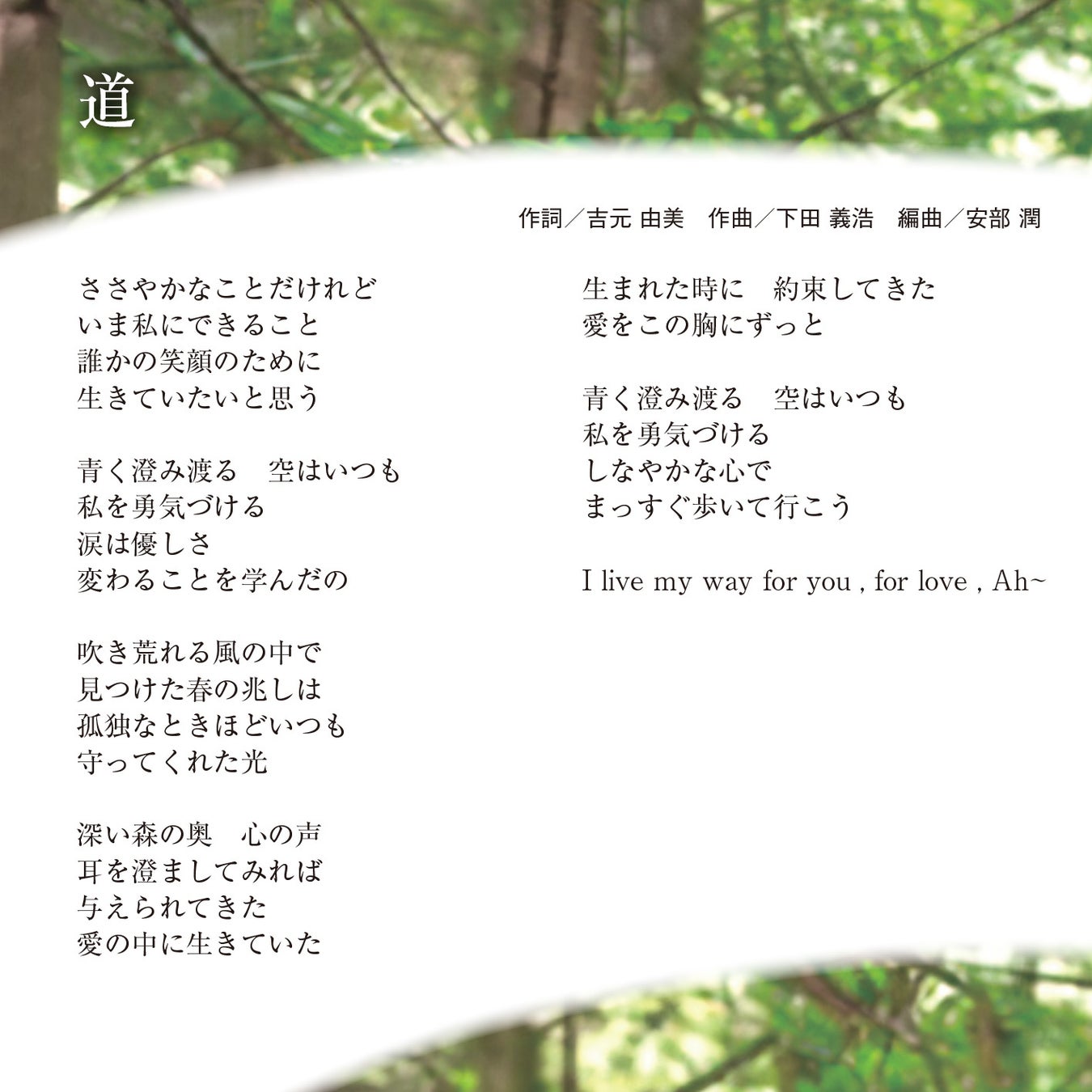 彼女の作詞による『道』と『みんなつながっている』は、下田義浩さんと景家淳さんによって作曲され、佐久間雅一さんのディレクションでレコーディングされました。