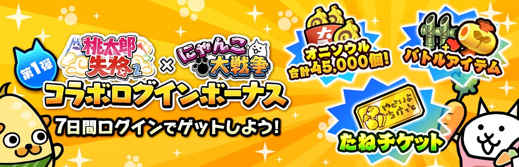 - ポノスが『桃太郎失格』と『にゃんこ大戦争』のコラボイベントを開催