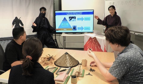 - セミナーでは、忍者の道具や情報伝達術を体験できる