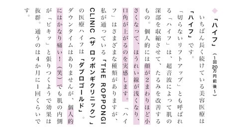 また、本書ではTHE ROPPONGI CLINIC恵比寿院で行われている美容医療も紹介されています。