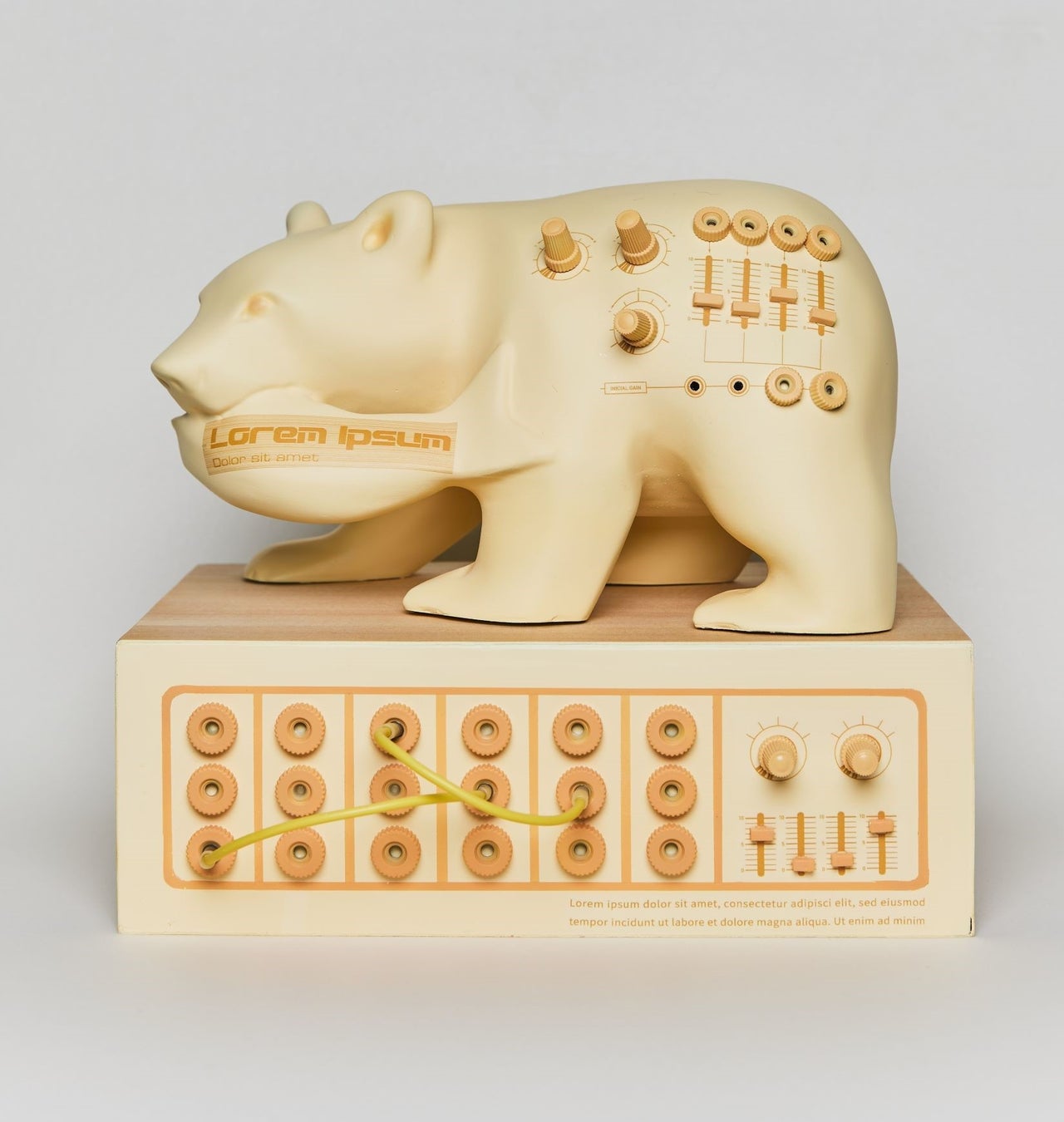 - 木彫りの熊をベースにした「ポンプヒグマ」や「ひかり福助」などユニークな作風