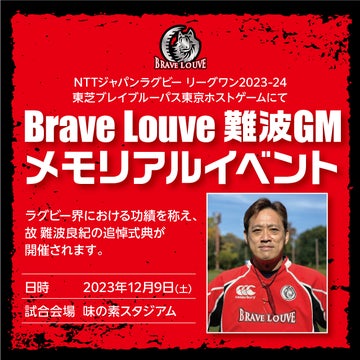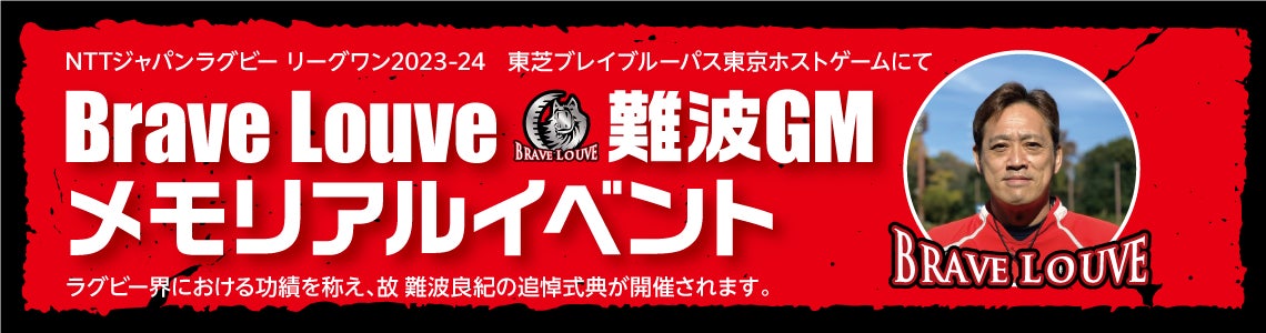 NTTジャパンラグビーリーグワン2023-24の東芝ブレイブルーパス東京ホストゲームでは、故難波良紀の追悼式典が行われます。