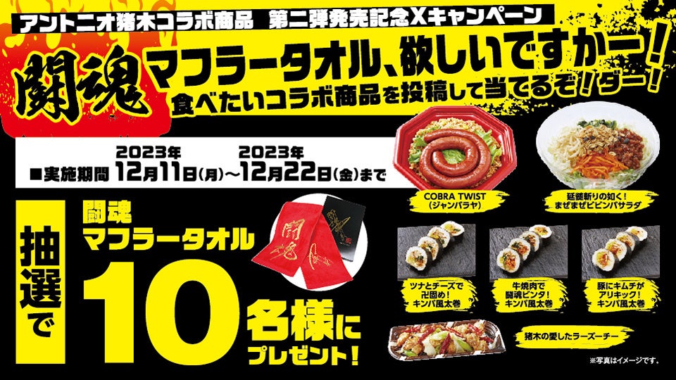 - COBRA TWIST、ラーズーチー、まぜまぜビビンバサラダ、キンパ風太巻き、闘魂マフラータオル