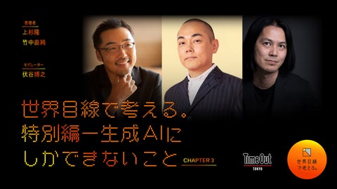 このイベントでは、「生成AIがあたりまえに存在する社会」について、ジャーナリスト上杉隆氏とスーパープログラマー竹中直純氏が議論します。
