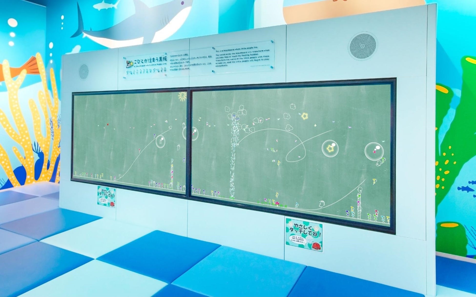 - チームラボの作品「こびとが住まう黒板」は、インタラクティブな世界を楽しむことができる