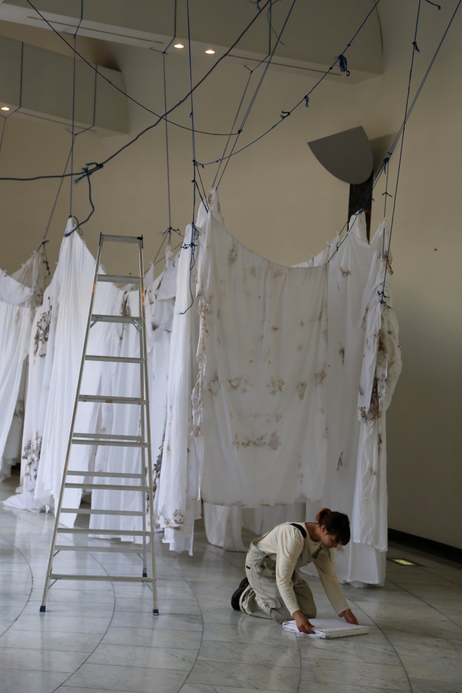 - 彼女は制作行為をパフォーマンスとして見せることにも取り組んでいる