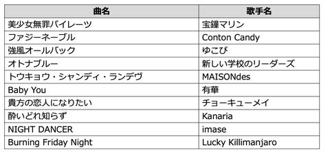アニメ楽曲や今年発売楽曲、VTuber楽曲、DAMセレクト!SNS人気楽曲、おうちカラオケのランキングも調査されました。